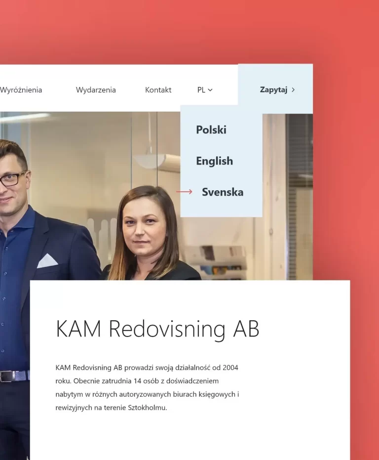 Zaprojektowaliśmy i wdrożyliśmy nową stronę internetową dla firmy KAM Redovisning, działającej głównie na rynku szwedzkim i polskim. Skupiliśmy się na dostosowaniu projektu do obu grup klientów, tworząc wielojęzyczną witrynę dostępną w trzech językach: szwedzkim, polskim i angielskim.