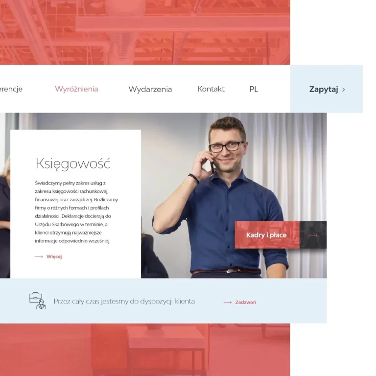 Klienci, którzy potrzebują szybkiego kontaktu, mają do dyspozycji opcję “Zapytaj” w górnym menu. To skraca ścieżkę konwersji do dwóch kroków – wystarczy przejść do zakładki “Zapytaj” i wypełnić formularz. Dodatkowo, dla preferujących kontakt telefoniczny, dodaliśmy opcję wybrania numeru firmy z poziomu podstron usługowych.
