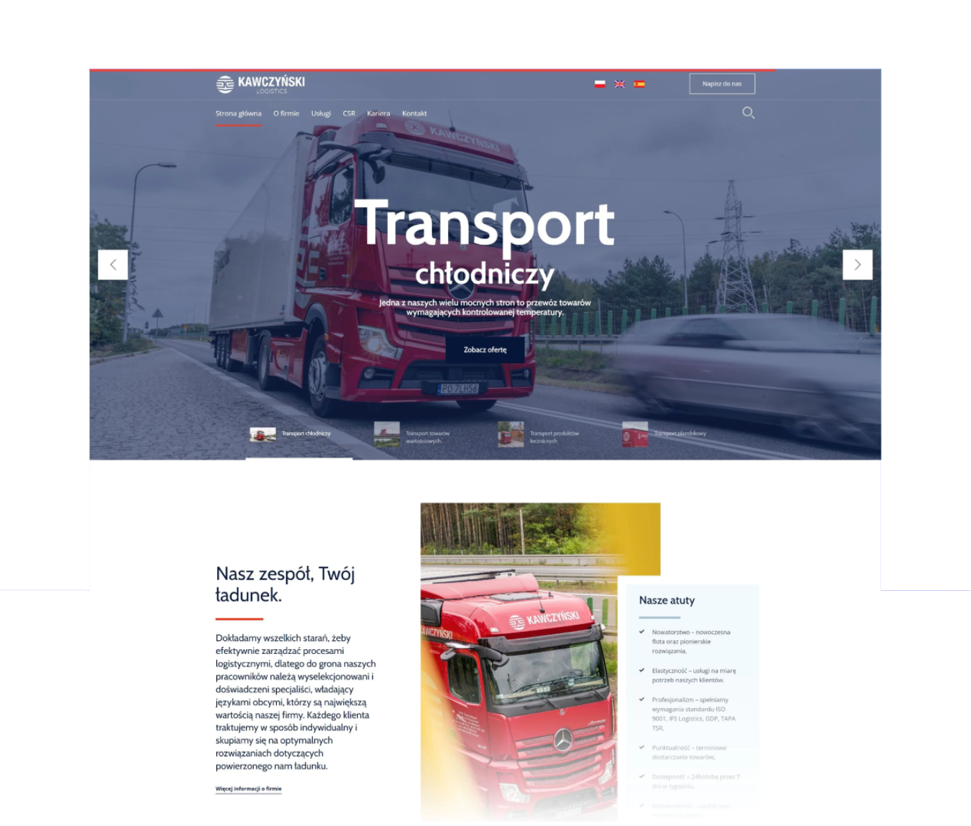 Dla Kawczyński Logistic stworzyliśmy nowoczesny serwis internetowy, który oddaje charakter firmy i spełnia wymagania branży logistycznej. Jednym z kluczowych założeń było zoptymalizowanie witryny pod kątem SEO, dlatego dostosowaliśmy otrzymane treści, aby zwiększyć ich widoczność w wynikach wyszukiwania.