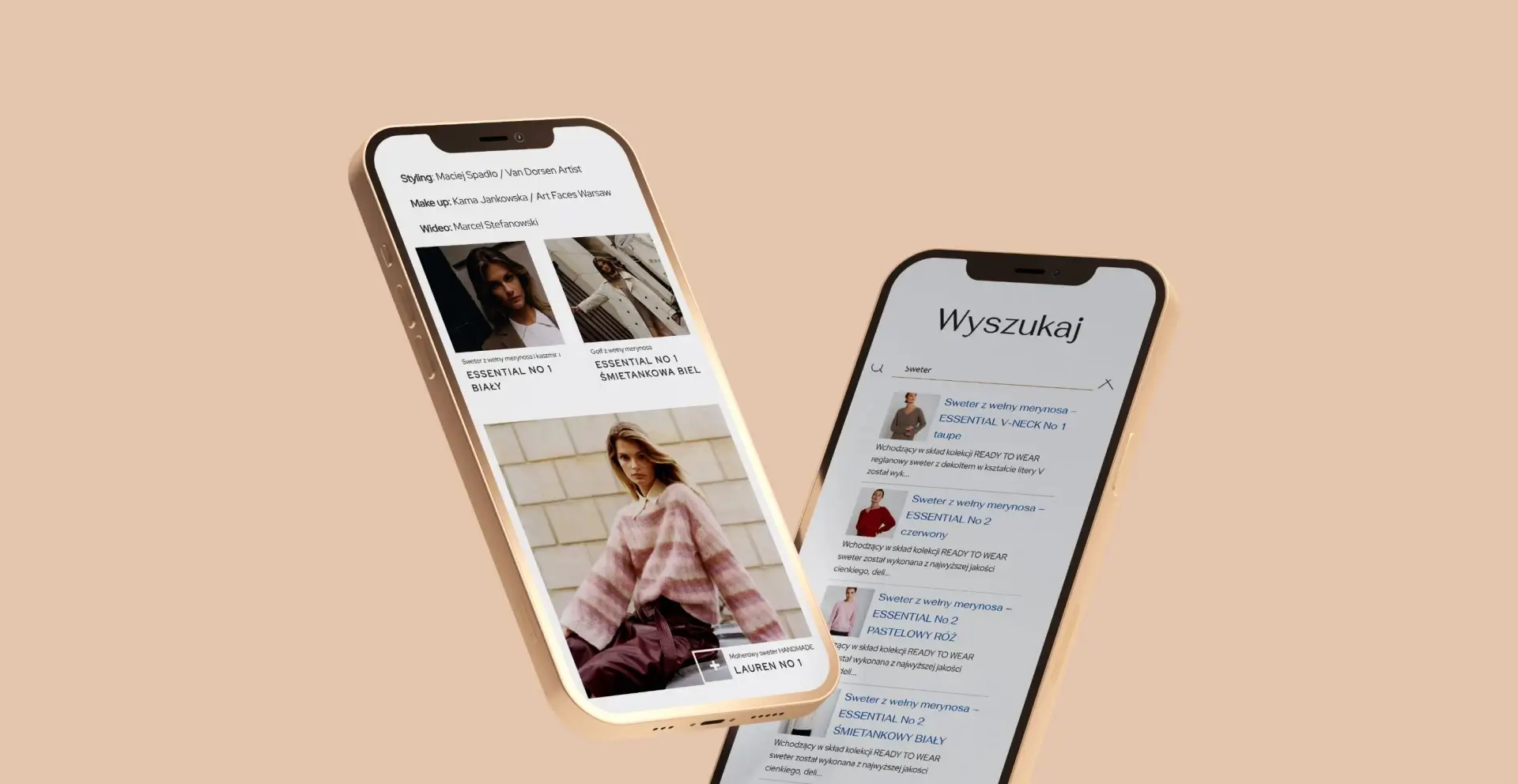 Ze względu na charakter branży modowej, kluczowe było odpowiednie przedstawienie oferty. Wdrożyliśmy wysokiej jakości zdjęcia produktowe (packshot, lookbook) oraz filmy wizerunkowe, które eksponują detale i jakość wykonania ubrań premium. Dzięki temu każdy produkt posiada indywidualnie zaprojektowany widok karty produktu, co podkreśla jego ekskluzywny charakter.